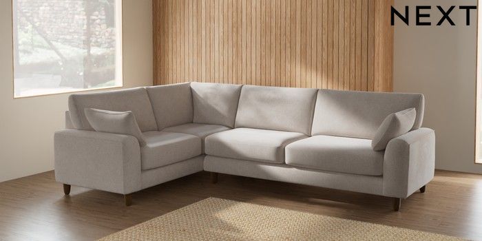 7.2.10 Campbell Large Corner Sofa - Left Hand Chunky Chenille Oyster High Leg - Mid | Made Click here to use our website with more accessibility support, for example screen readers