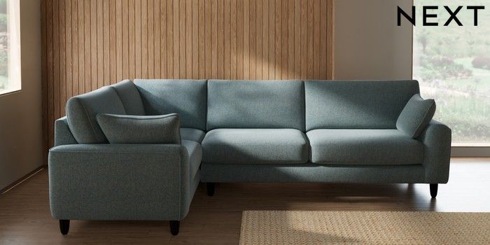 7.2.10 Campbell Large Corner Sofa - Left Hand Chunky Marl Mid Blue High Leg - Dark | Made Click here to use our website with more accessibility support, for example screen readers