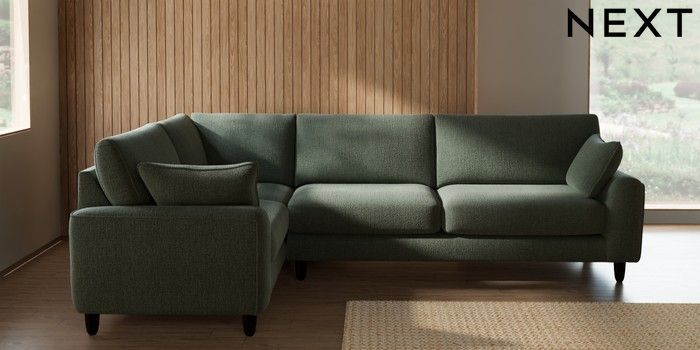 7.2.10 Campbell Large Corner Sofa - Left Hand Chunky Texture Mid Forest Green High Leg - Dark | Made Click here to use our website with more accessibility support, for example screen readers