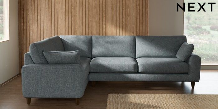 7.2.10 Campbell Large Corner Sofa - Left Hand Chunky Weave Mid Blue High Leg - Mid | Made Click here to use our website with more accessibility support, for example screen readers