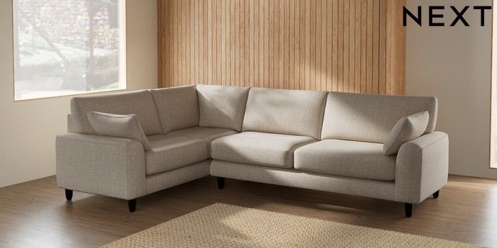 7.2.10 Campbell Large Corner Sofa - Left Hand Chunky Weave Mid Natural High Leg - Dark | Made Click here to use our website with more accessibility support, for example screen readers