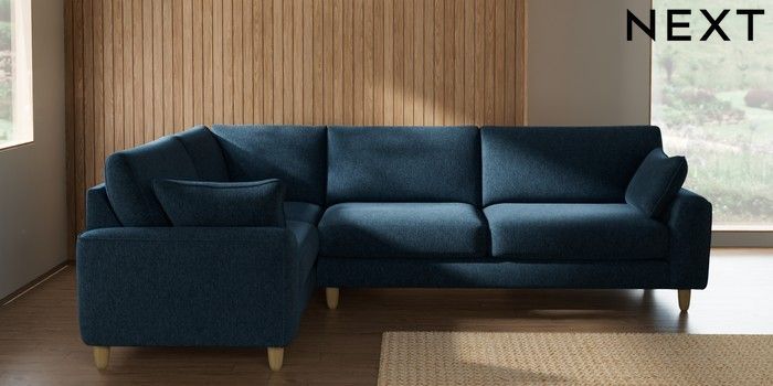 7.2.10 Campbell Large Corner Sofa - Left Hand Cotswold Chenille Dark Blue High Leg - Light | Made Click here to use our website with more accessibility support, for example screen readers
