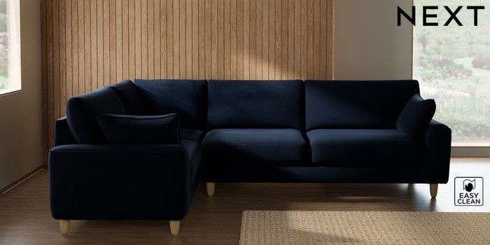 7.2.10 Campbell Large Corner Sofa - Left Hand Fine Chenille Easy Clean Dark Navy Blue High Leg - Light | Made Click here to use our website with more accessibility support, for example screen readers