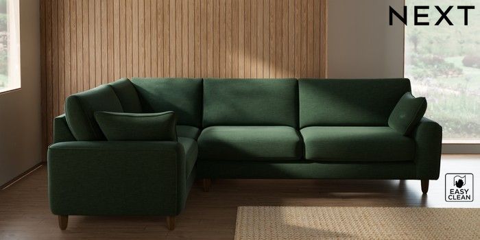 7.2.10 Campbell Large Corner Sofa - Left Hand Fine Chenille Easy Clean Mid Khaki Green High Leg - Mid | Made Click here to use our website with more accessibility support, for example screen readers