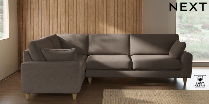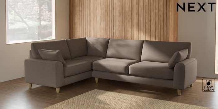7.2.10 Campbell Large Corner Sofa - Left Hand Fine Chenille Easy Clean Mid Taupe Brown High Leg - Light | Made Click here to use our website with more accessibility support, for example screen readers
