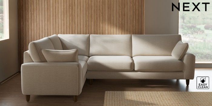 7.2.10 Campbell Large Corner Sofa - Left Hand Fine Chenille Easy Clean Oyster High Leg - Mid | Made Click here to use our website with more accessibility support, for example screen readers