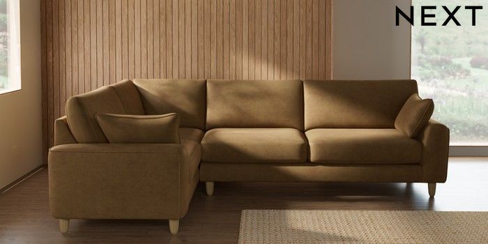 7.2.10 Campbell Large Corner Sofa - Left Hand Luxe Chenille Honey Yellow High Leg - Light | Made Click here to use our website with more accessibility support, for example screen readers