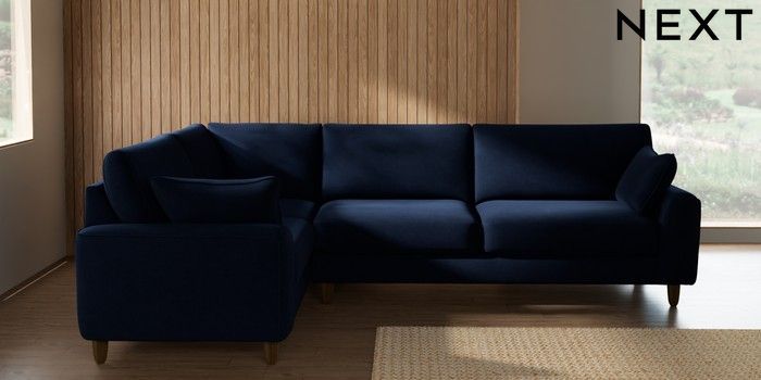 7.2.10 Campbell Large Corner Sofa - Left Hand Luxe Chenille Navy Blue High Leg - Mid | Made Click here to use our website with more accessibility support, for example screen readers