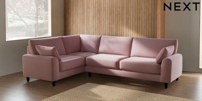 7.2.10 Campbell Large Corner Sofa - Left Hand Natural Mix Light Rose Pink High Leg - Dark | Made Click here to use our website with more accessibility support, for example screen readers