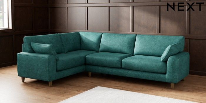 7.2.10 Campbell Large Corner Sofa - Left Hand Plush Chenille Dark Teal Green High Leg - Mid | Made Click here to use our website with more accessibility support, for example screen readers