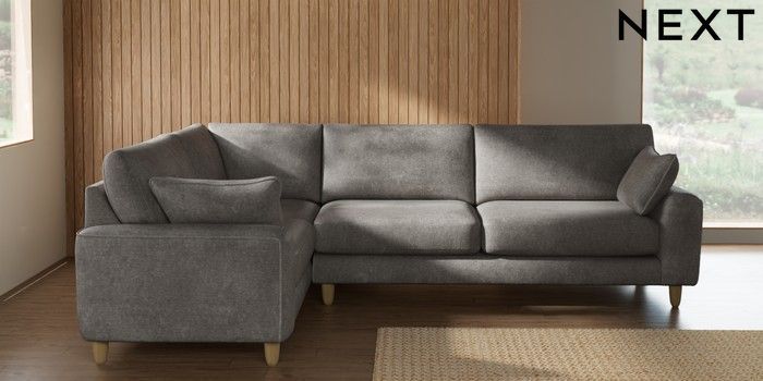 7.2.10 Campbell Large Corner Sofa - Left Hand Plush Chenille Light Grey High Leg - Light | Made Click here to use our website with more accessibility support, for example screen readers