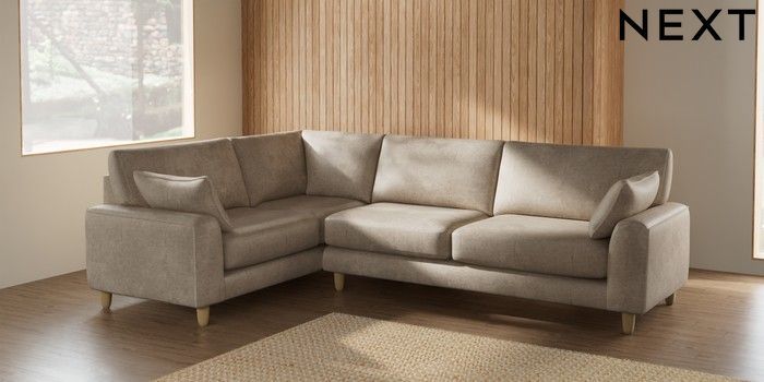 7.2.10 Campbell Large Corner Sofa - Left Hand Plush Chenille Light Natural High Leg - Light | Made Click here to use our website with more accessibility support, for example screen readers