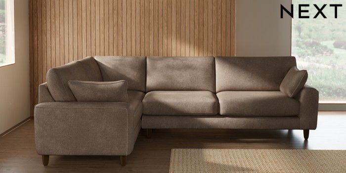 7.2.10 Campbell Large Corner Sofa - Left Hand Plush Chenille Mid Natural High Leg - Mid | Made Click here to use our website with more accessibility support, for example screen readers