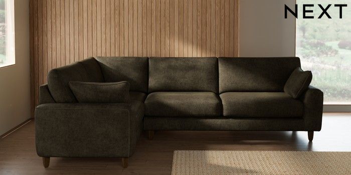 7.2.10 Campbell Large Corner Sofa - Left Hand Plush Chenille Moss Green High Leg - Mid | Made Click here to use our website with more accessibility support, for example screen readers