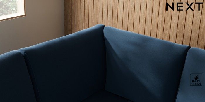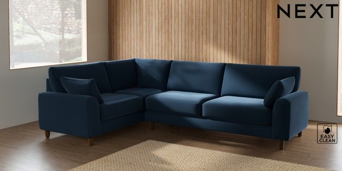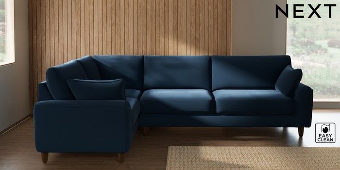 7.2.10 Campbell Large Corner Sofa - Left Hand Plush Velvet Easy Clean Airforce Blue High Leg - Mid | Made Click here to use our website with more accessibility support, for example screen readers