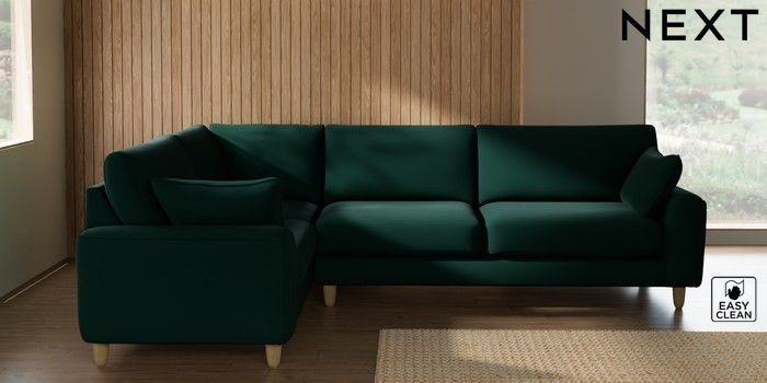 7.2.10 Campbell Large Corner Sofa - Left Hand Plush Velvet Easy Clean Bottle Green High Leg - Light | Made Click here to use our website with more accessibility support, for example screen readers