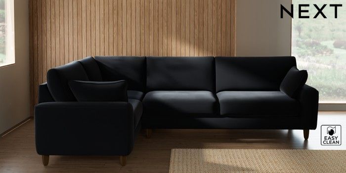 7.2.10 Campbell Large Corner Sofa - Left Hand Plush Velvet Easy Clean Charcoal Grey High Leg - Mid | Made Click here to use our website with more accessibility support, for example screen readers