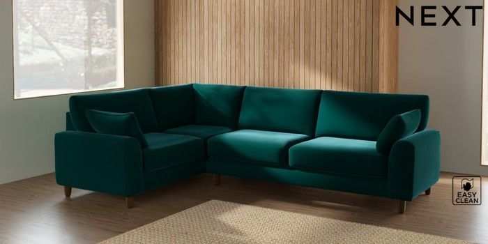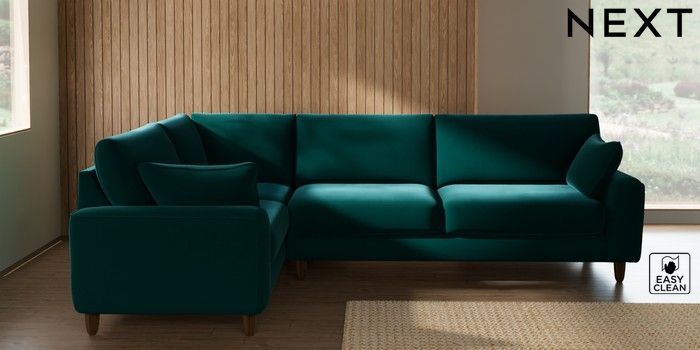 7.2.10 Campbell Large Corner Sofa - Left Hand Plush Velvet Easy Clean Juniper Green High Leg - Mid | Made Click here to use our website with more accessibility support, for example screen readers