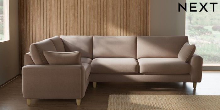 7.2.10 Campbell Large Corner Sofa - Left Hand Relaxed Linen Look Mid Natural High Leg - Light | Made Click here to use our website with more accessibility support, for example screen readers