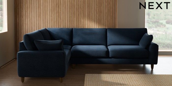 7.2.10 Campbell Large Corner Sofa - Left Hand Ripple Chenille Dark Blue High Leg - Mid | Made Click here to use our website with more accessibility support, for example screen readers