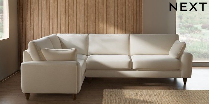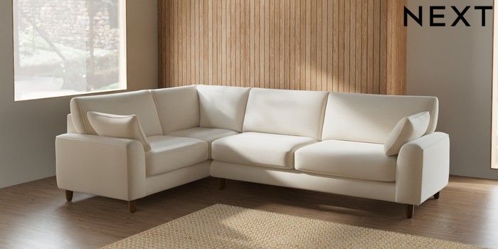 7.2.10 Campbell Large Corner Sofa - Left Hand Ripple Chenille Oyster High Leg - Mid | Made Click here to use our website with more accessibility support, for example screen readers