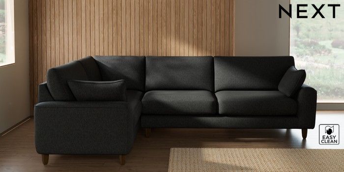 7.2.10 Campbell Large Corner Sofa - Left Hand Tweedy Blend Easy Clean Charcoal Grey High Leg - Mid | Made Click here to use our website with more accessibility support, for example screen readers