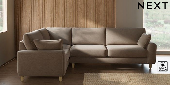 7.2.10 Campbell Large Corner Sofa - Left Hand Tweedy Blend Easy Clean Light Dove Natural High Leg - Light | Made Click here to use our website with more accessibility support, for example screen readers