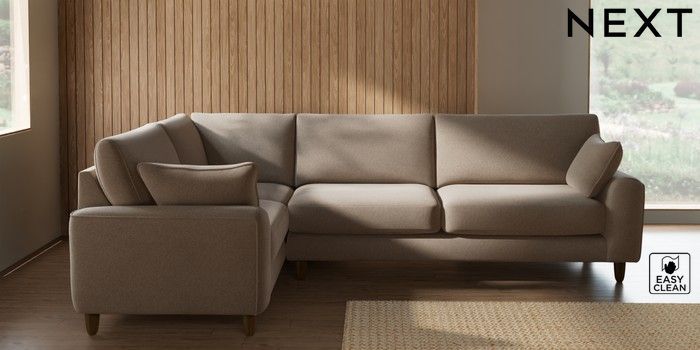 7.2.10 Campbell Large Corner Sofa - Left Hand Tweedy Blend Easy Clean Light Dove Natural High Leg - Mid | Made Click here to use our website with more accessibility support, for example screen readers