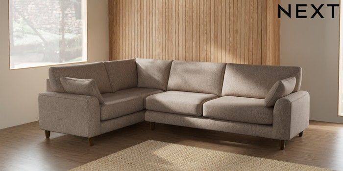7.2.10 Campbell Large Corner Sofa - Left Hand Tweedy Chenille Mid Natural High Leg - Mid | Made Click here to use our website with more accessibility support, for example screen readers