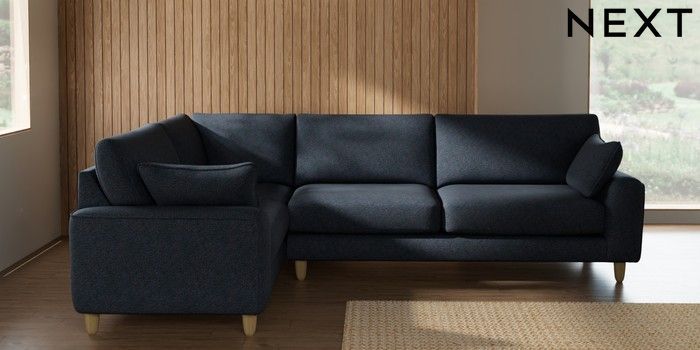 7.2.10 Campbell Large Corner Sofa - Left Hand Tweedy Chenille Navy Blue High Leg - Light | Made Click here to use our website with more accessibility support, for example screen readers