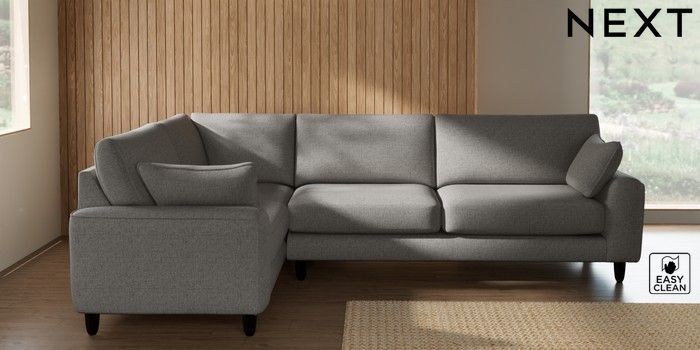 7.2.10 Campbell Large Corner Sofa - Left Hand Woven Chenille Easy Clean Light Grey High Leg - Dark | Made Click here to use our website with more accessibility support, for example screen readers