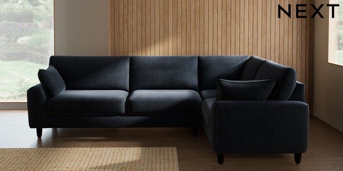 7.2.10 Campbell Large Corner Sofa - Right Hand Boucle Chenille Dark Slate Blue High Leg - Dark | Made Click here to use our website with more accessibility support, for example screen readers