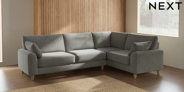 7.2.10 Campbell Large Corner Sofa - Right Hand Chunky Chenille Light Grey High Leg - Light | Made Click here to use our website with more accessibility support, for example screen readers