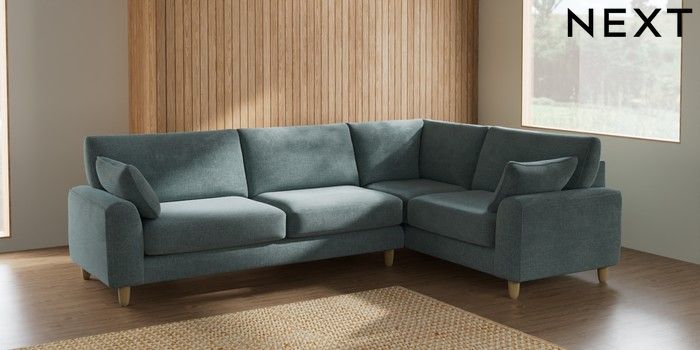 7.2.10 Campbell Large Corner Sofa - Right Hand Chunky Chenille Light Teal Green High Leg - Light | Made Click here to use our website with more accessibility support, for example screen readers