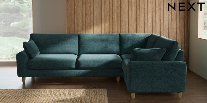 7.2.10 Campbell Large Corner Sofa - Right Hand Chunky Chenille Mid Teal Green High Leg - Light | Made Click here to use our website with more accessibility support, for example screen readers