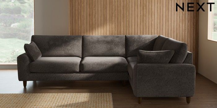 7.2.10 Campbell Large Corner Sofa - Right Hand Chunky Chenille Mink Brown High Leg - Mid | Made Click here to use our website with more accessibility support, for example screen readers