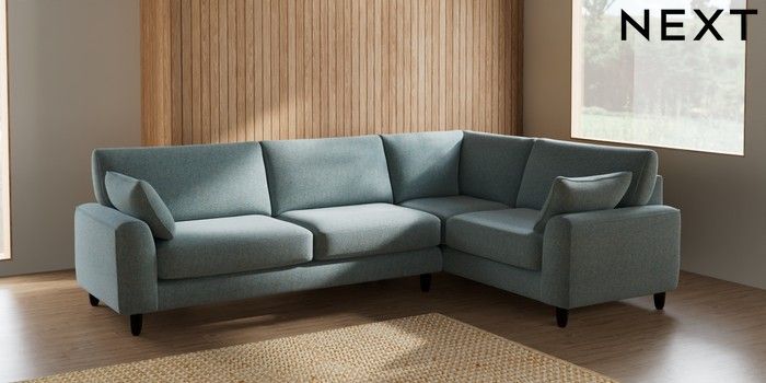 7.2.10 Campbell Large Corner Sofa - Right Hand Chunky Marl Mid Blue High Leg - Dark | Made Click here to use our website with more accessibility support, for example screen readers