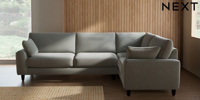 7.2.10 Campbell Large Corner Sofa - Right Hand Chunky Texture Dove High Leg - Dark | Made Click here to use our website with more accessibility support, for example screen readers