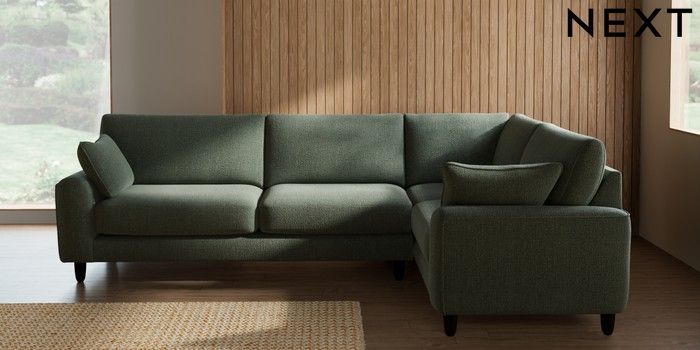 7.2.10 Campbell Large Corner Sofa - Right Hand Chunky Texture Mid Forest Green High Leg - Dark | Made Click here to use our website with more accessibility support, for example screen readers
