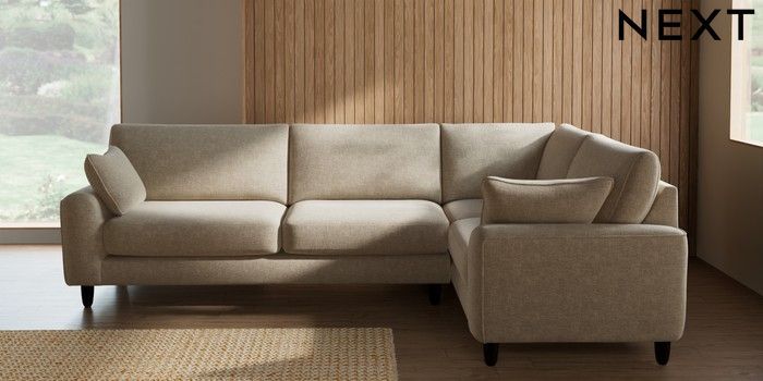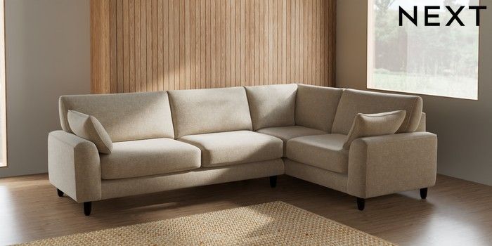 7.2.10 Campbell Large Corner Sofa - Right Hand Chunky Weave Cream High Leg - Dark | Made Click here to use our website with more accessibility support, for example screen readers