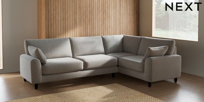 7.2.10 Campbell Large Corner Sofa - Right Hand Chunky Weave Dove Grey High Leg - Dark | Made Click here to use our website with more accessibility support, for example screen readers