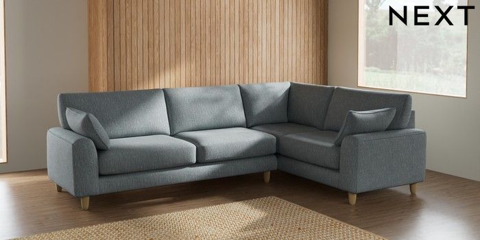7.2.10 Campbell Large Corner Sofa - Right Hand Chunky Weave Mid Blue High Leg - Light | Made Click here to use our website with more accessibility support, for example screen readers