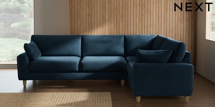 7.2.10 Campbell Large Corner Sofa - Right Hand Cotswold Chenille Dark Blue High Leg - Light | Made Click here to use our website with more accessibility support, for example screen readers