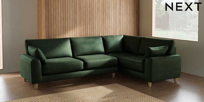 7.2.10 Campbell Large Corner Sofa - Right Hand Luxe Chenille Dark Green High Leg - Light | Made Click here to use our website with more accessibility support, for example screen readers
