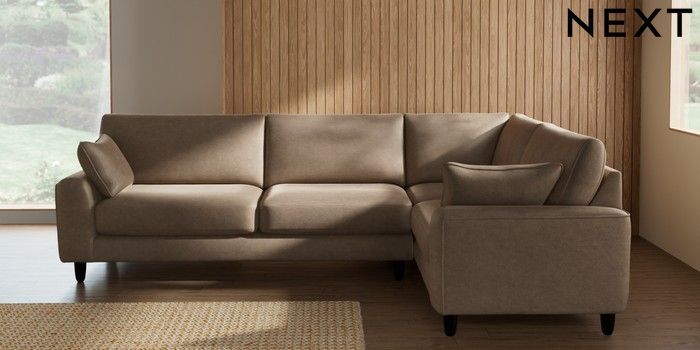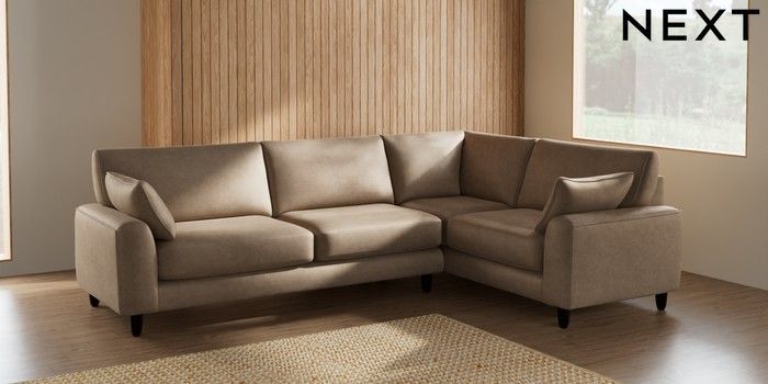 7.2.10 Campbell Large Corner Sofa - Right Hand Luxe Chenille Mid Camel Beige High Leg - Dark | Made Click here to use our website with more accessibility support, for example screen readers