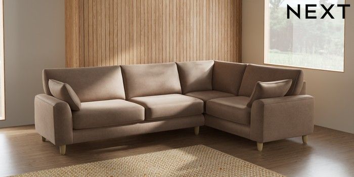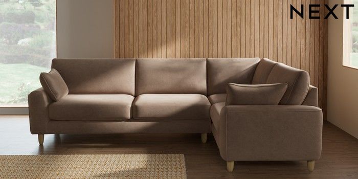 7.2.10 Campbell Large Corner Sofa - Right Hand Luxe Chenille Mid Natural High Leg - Light | Made Click here to use our website with more accessibility support, for example screen readers