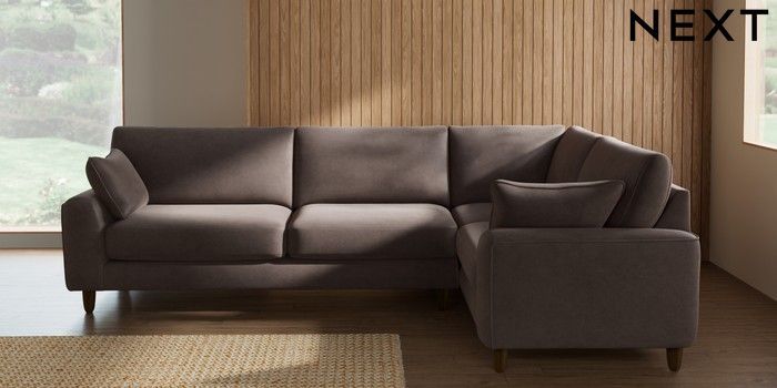 7.2.10 Campbell Large Corner Sofa - Right Hand Luxe Chenille Mink Brown High Leg - Mid | Made Click here to use our website with more accessibility support, for example screen readers