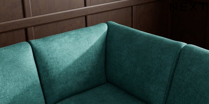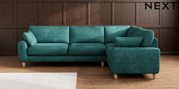 7.2.10 Campbell Large Corner Sofa - Right Hand Plush Chenille Dark Teal Green High Leg - Light | Made Click here to use our website with more accessibility support, for example screen readers