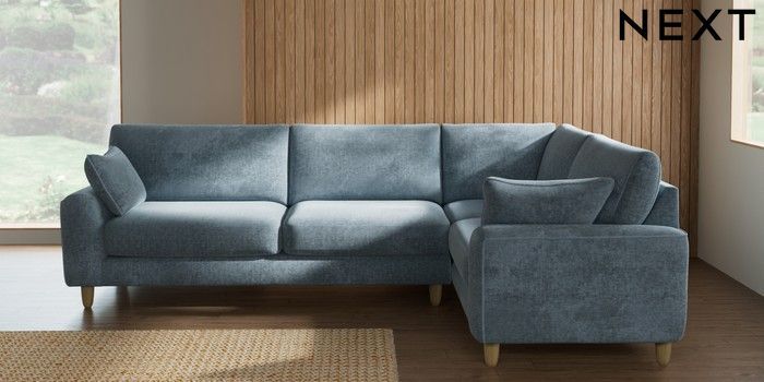 7.2.10 Campbell Large Corner Sofa - Right Hand Plush Chenille Light Blue High Leg - Light | Made Click here to use our website with more accessibility support, for example screen readers