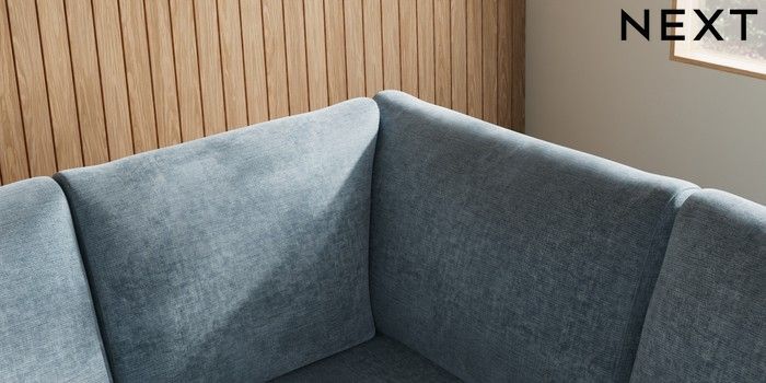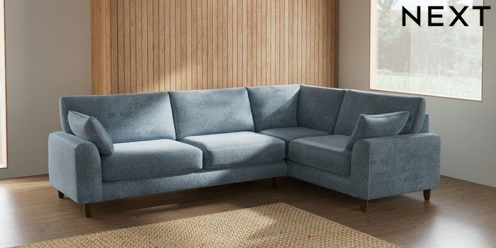 7.2.10 Campbell Large Corner Sofa - Right Hand Plush Chenille Light Blue High Leg - Mid | Made Click here to use our website with more accessibility support, for example screen readers